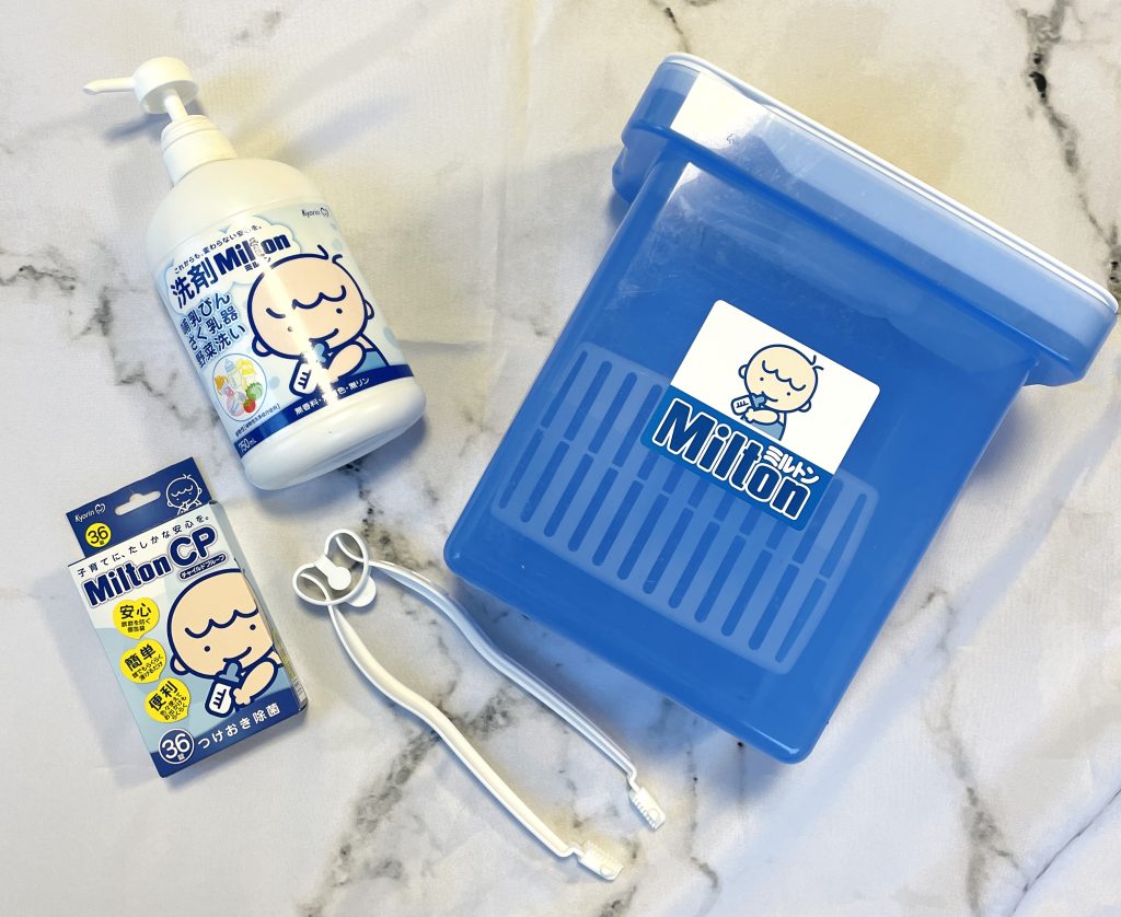 洗った哺乳瓶やら乳首以外にも、離乳食を始めたばかりの頃は小分けトレーなどまで薬剤OKのものにはわりとよく使っていたので結果王道のミルトンにして正解だったと思っています。